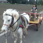 今日は、馬車を使い仔馬(2歳のポニー)の調教をしました。 馬車の調教にあたるのは子どもです。