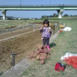 体育の日、今日は朝から相模川河川敷にてボランティアの手により推薦が植えられている花壇の整備を近所の子供達の力を借りて「土壌」の改良を行うため土掘りをした。硬い土壌を掘り起こすと沢山の「さつま芋」がでてきて、子供たちは大喜び!!