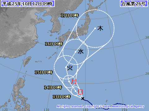 台風26号は、中心気圧955ヘクトパスカル、最大風速40メートルほどの強い勢力で関東などを襲い、各地に記録的な大雨を降らせた。気象庁の内田裕之主任予報官は接近前の15日、「関東でこの気圧は2004年の台風22号以来。これほどの台風は久しぶり」と会見で語り、厳重な警戒を呼びかけていた。