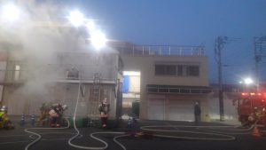 第二警備隊による、実戦さながらの建物火災を想定した消防救助訓練のお披露目がありました。