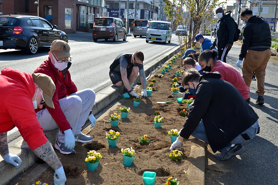 在日米海軍厚木基地から花植え作業