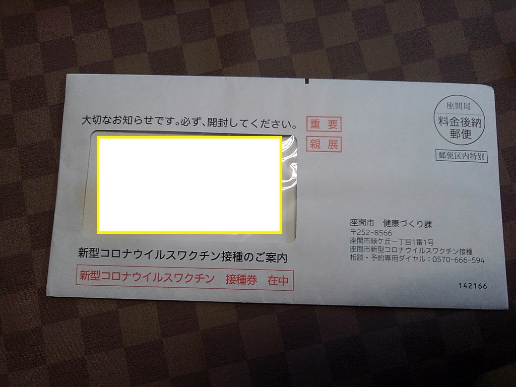 コロナワクチン接種券封筒の写真