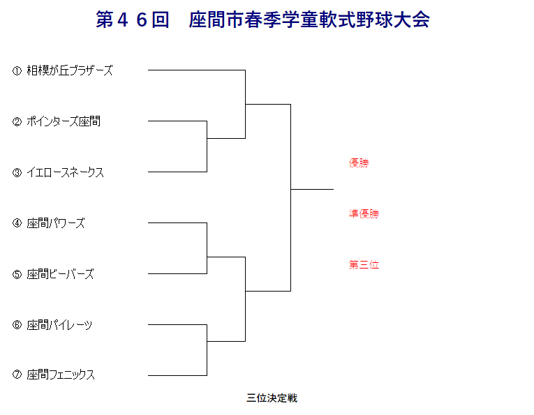 第46回 座間市春季学童軟式野球大会トーナメント表