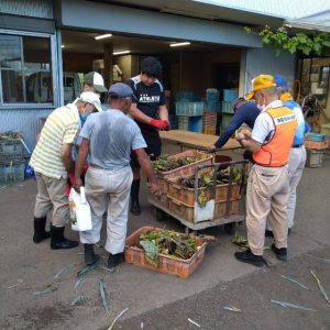 本日は、伝説の白いヒマワリの種を地元のボランティア団体と収穫し、