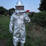 『ハチ防護服』をお借りして、スズメ蜂の巣の駆除を行いました。