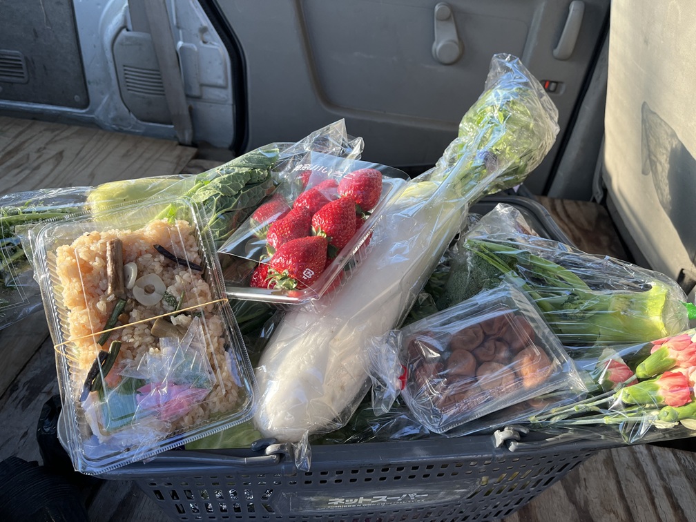 今日の買い物 おこわ、いちご(座間産)、梅干し(山田十郎)他たくさん