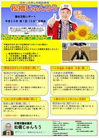 2月3日(水) 情報誌『元気爆発』 1ページ 神奈川県の中央部に位置する約17K㎡の小さな座間市の手造りの情報紙が完成! 夜中、目を充血させながら編集した、小さな座間市の前向きな、明るいニュースのみ記載した 手造り情報誌です(1ページ) 発行(無料)は来週! 小さな街(市)を明るくするアイデア募集中!! 製作 松橋じゅんろう 構成 藤原和人 (元レスリング・グレコローマン選手)