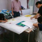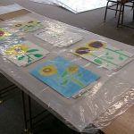 本日も、3000枚のひまわり絵画のプラダン作業を行いました。昨日よりボランティアが少ないでしたが、東原中学校の学生、小さな子供たちが楽しそうに作業を行いました。お昼過ぎには、3000枚のひまわり絵画はプラダンに装着され、ひまわりフェスタ会場の日産自動車株式会社座間事業所まで運搬される準備が整いました。