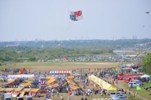 (写真 座間の大凧まつり、ひまわり焼酎、青空に恵まれたこどもの日)