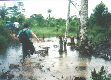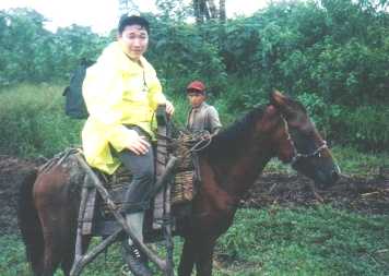 沼地を進みしばらくすると再びジャングルの森の中へすい込まれていく、舟から陸地に上陸し歩く事1時間、日本でしっかりジョギングで鍛えた自身のある体力にも限界が見えかけたそのとき、ジャングルの茂みの中から独りの少年がロバを引き連れ歩いてくるではないか。最後尾に疲れきって歩いていた僕に、泥だらけのロバ少年はロバに乗れと笑顔で声をかけてくれた。この少年はお酒の原料のサトウキビを取りに行く途中であった。サトウキビの収穫に関する説明は後ほどにしよう。