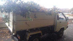 さっそく、地権者を探し、地権者の方と樹木の剪定を行いました!