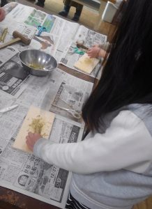 来年、和紙の紙漉きをするための、材料の加工を行いました。