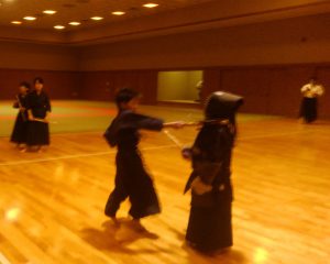 素足になり、元気なこども達の間で、銃短剣道の武道稽古が行われました。