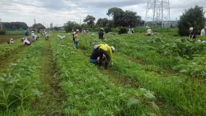 ヒマワリの成長を妨げる、雑草の抜き取り作業を泥だらけにな行いました!