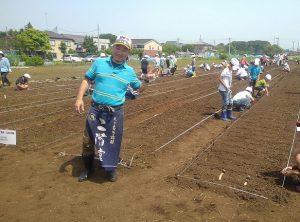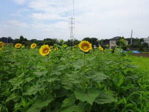 ひまわり栽培を行う中