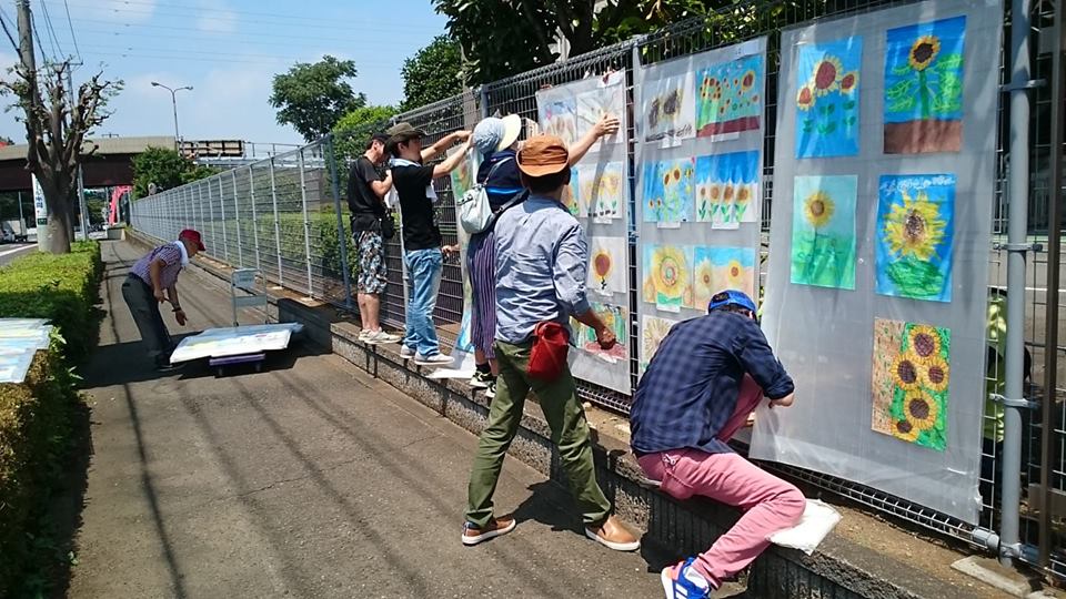 ひまわり絵画展 座間日産自動車㈱会社フェンスにて!