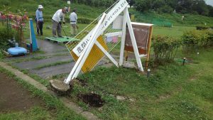 ポールや芝刈り機が壊されているとの連絡を頂き現場へ行きました。