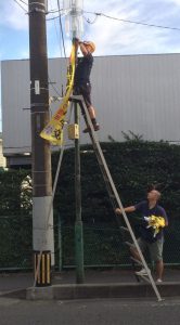 (写真 商店会と地元小学校おやじの会と共同作業)