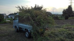まず、生殖した「アカザ」をトラックで堆肥場所へ運び