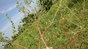 打開策として、ひまわり畑に生殖するすべての「アカザ」を根元から、