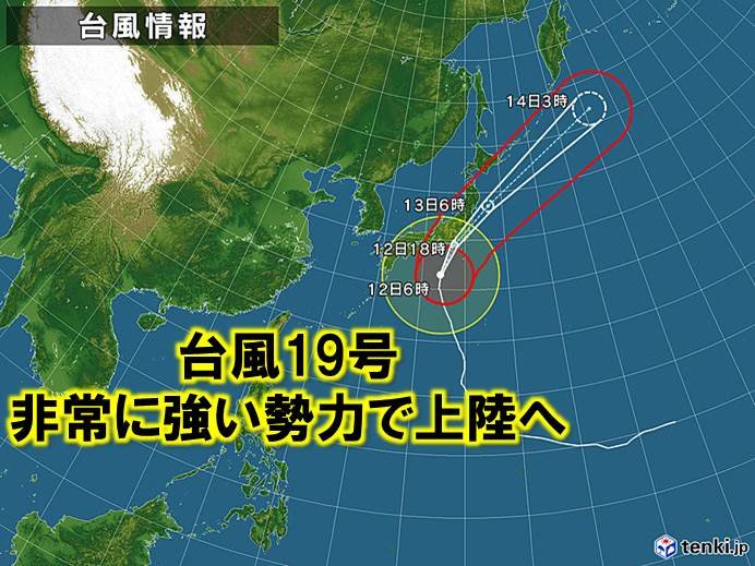 大型で非常に強い台風19号は、勢力を落とすことなく