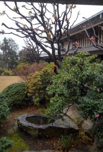 (写真 みぞれ雪の神奈川県立武道館と武道場の景色)