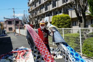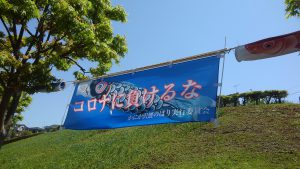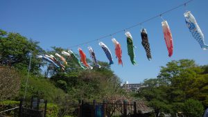 かにが沢公園の谷間に、こいのぼりを掲揚しました。