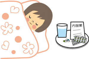 午前中は、薬をのまず、温かいお茶を飲んで寝ていれば