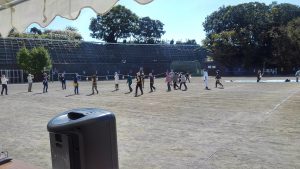 校庭で輪をつくり『座間音頭』を踊り閉会いたしました。