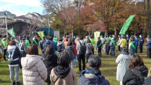 (写真 冒頭あいさつをする湯浅会長 かにが沢公園)