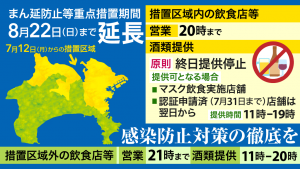 新型コロナウィルス対応の「まん延防止等の重点措置」の延長を受け、