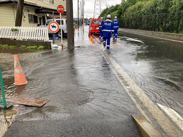 通行止めの市道38号線(9月18日 午前6時ころ)