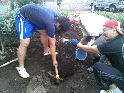これらの花壇をボランティアで硬い岩盤を切り裂き