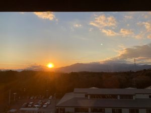今年最後、市庁舎より夕陽を背に感謝しつつ、