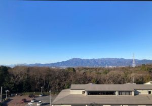 (写真 令和4年1月4日 晴天の仕事始め日 庁舎から図書館と遥か向こうに大山が一望できました。)
