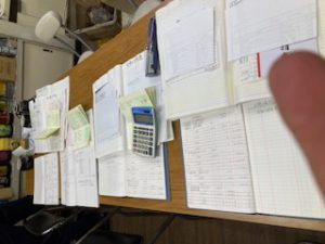 組合員がら徴収した会費や出費の領収書と帳簿合わせたのち