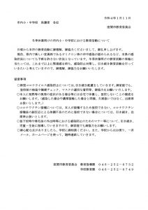 「冬季休業明けの市内小・中学校における教育活動について」報告がありましたので。