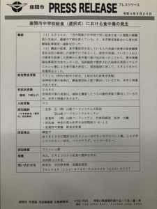 5月20日、「市内複数の中学校で同じ給食を食べた複数の教職員と生徒が、
