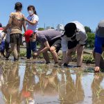 国際交流田植えの様子 (座間市入谷駅の田んぼ)