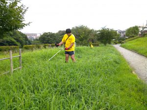 冬のひまわり栽培に向けた公園早朝の草刈り