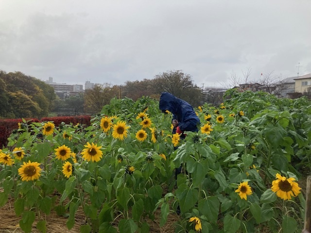雨の中の作業