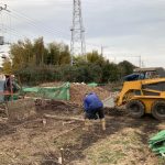 ボブキャット(小型ブル)を使用し樹木の引き抜きをしました。