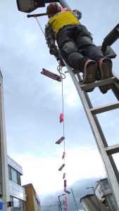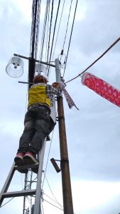 毎年、高所作業にて、命をかけて「こいのぼり」を掲揚しています。