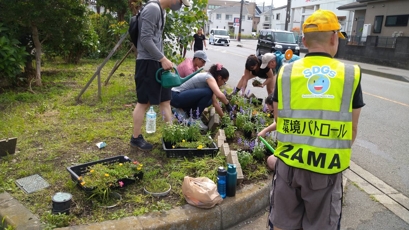 さがみ野ストリートガーデンを植栽する米海軍のボランティア