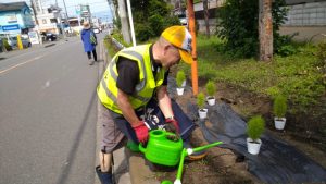 植栽前の水やり