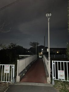 「小池跨線橋」の道路灯が2灯が消灯した状態です。