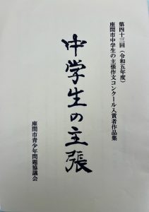 大会では「中学生の主張」作文コンクールの入賞表彰が行われ、