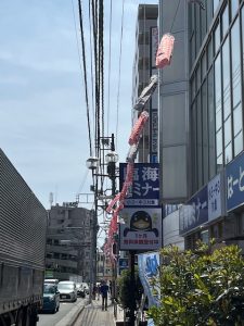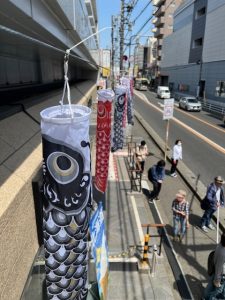 駅北口の県道51号線(行幸通り)に、約120匹の鯉のぼりを泳がせました。