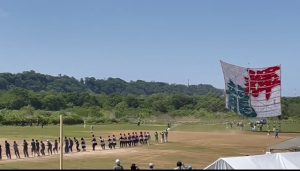 大凧まつりにおいて、 縦横13m四方 たたみ100畳分 重さ1トンの