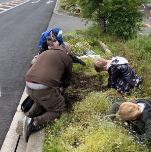 環境美化活動をする米海軍厚木基地の親子の皆さん.
